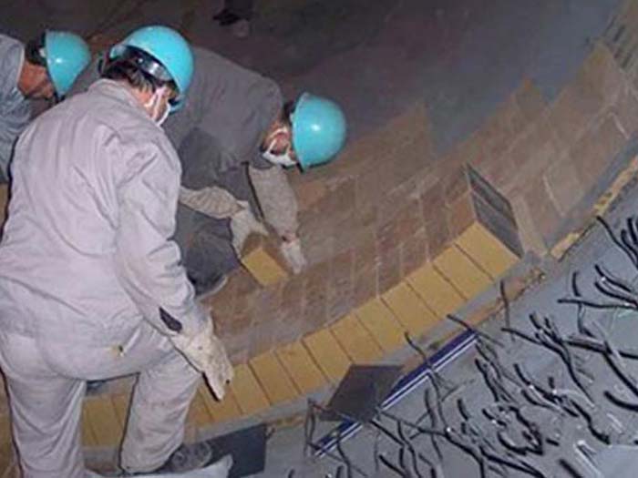 特別在開停較頻繁的窯上使用,壽命大為縮短,沒有窯皮做為屏障的鎂鉻磚,表面溫度隨窯況變化,窯皮頻繁更替,會使膨脹系數(shù)較大的鎂鉻磚發(fā)生熱疲勞,化學(xué)侵蝕,液相堿鹽的滲入使磚結(jié)構(gòu)惡化,降低抗熱疲勞性能,使胴體溫度在此幾環(huán)鎂鉻磚處不斷升高,更終紅窯,為了補(bǔ)掛窯皮在胴體表面噴水強(qiáng)制在火磚上形成窯皮,但窯的受熱膨脹對磚襯內(nèi)壓應(yīng)力補(bǔ)償作用消失,不利于磚襯壽命,加之,磚體太薄不能形成穩(wěn)定窯皮,多次紅窯。只有進(jìn)窯挖補(bǔ),磚更薄處只有40cm左右。在窯口處2m處的鎂鉻磚也出現(xiàn)過類似情況。
